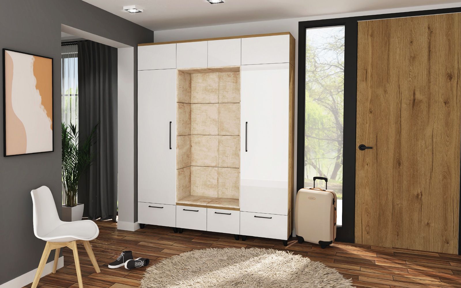 Kolekcja do garderoby Mastania to eleganckie i funkcjonalne rozwiązanie do przechowywania. Jej nowoczesny design, wysokiej jakości materiały zapewniają maksymalne wykorzystanie przestrzeni i łatwy dostęp do ubrań. Kolekcja Mastania łączy estetykę z praktycznością, tworząc idealne miejsce do organizacji i przechowywania odzieży w stylowy sposób.
