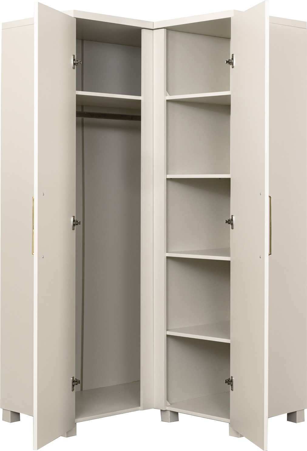 Szafa narożna Bari w kolorze kaszmir to doskonałe rozwiązanie do optymalizacji przestrzeni w Twoim wnętrzu. Jej elegancki design i stonowana kolorystyka harmonijnie komponują się z każdym stylem aranżacyjnym, oferując funkcjonalność i miejsce do przechowywania bez kompromisów.