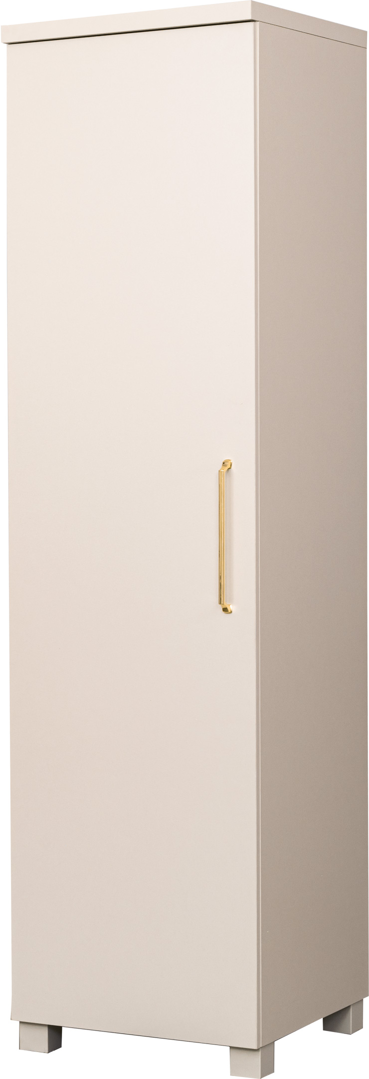Półszafa uniwersalna Bari w kolorze kaszmir z drążkiem i półkami to praktyczny i elegancki mebel do przechowywania ubrań i innych przedmiotów. Drzwi otwierane w prawą / lewą stronę (do wyboru podczas montażu). Dzięki nowoczesnemu designowi oraz stonowanej kolorystyce idealnie pasuje do różnych wnętrz, zapewniając organizację i funkcjonalność.