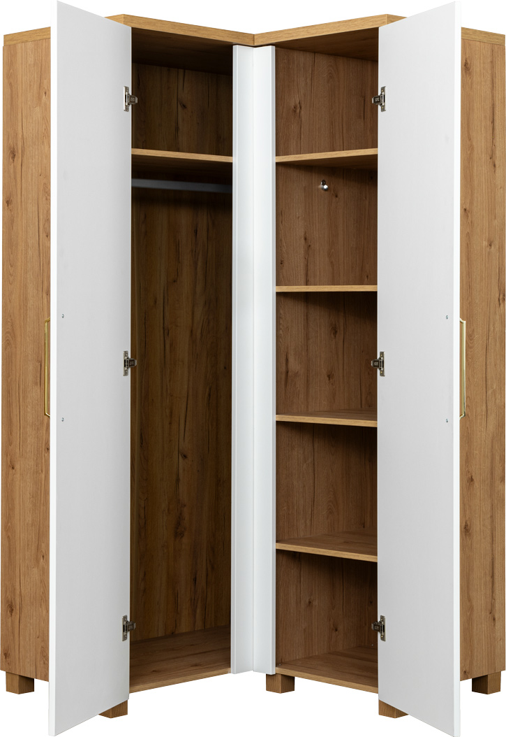 Szafa narożna Hawana (biały lakier mat/dąb soma ciemny)