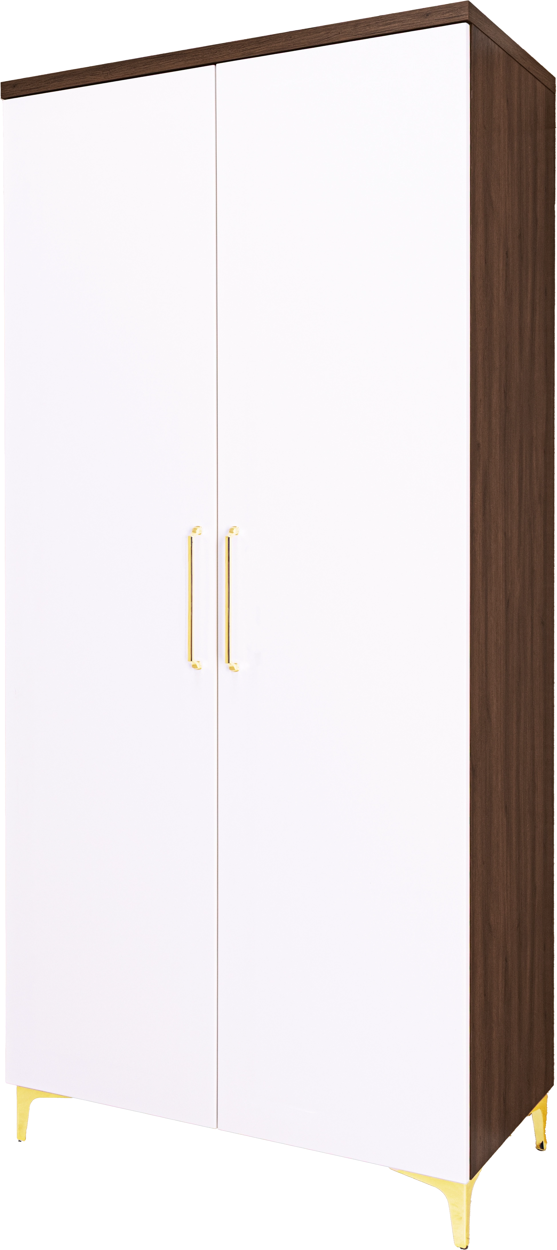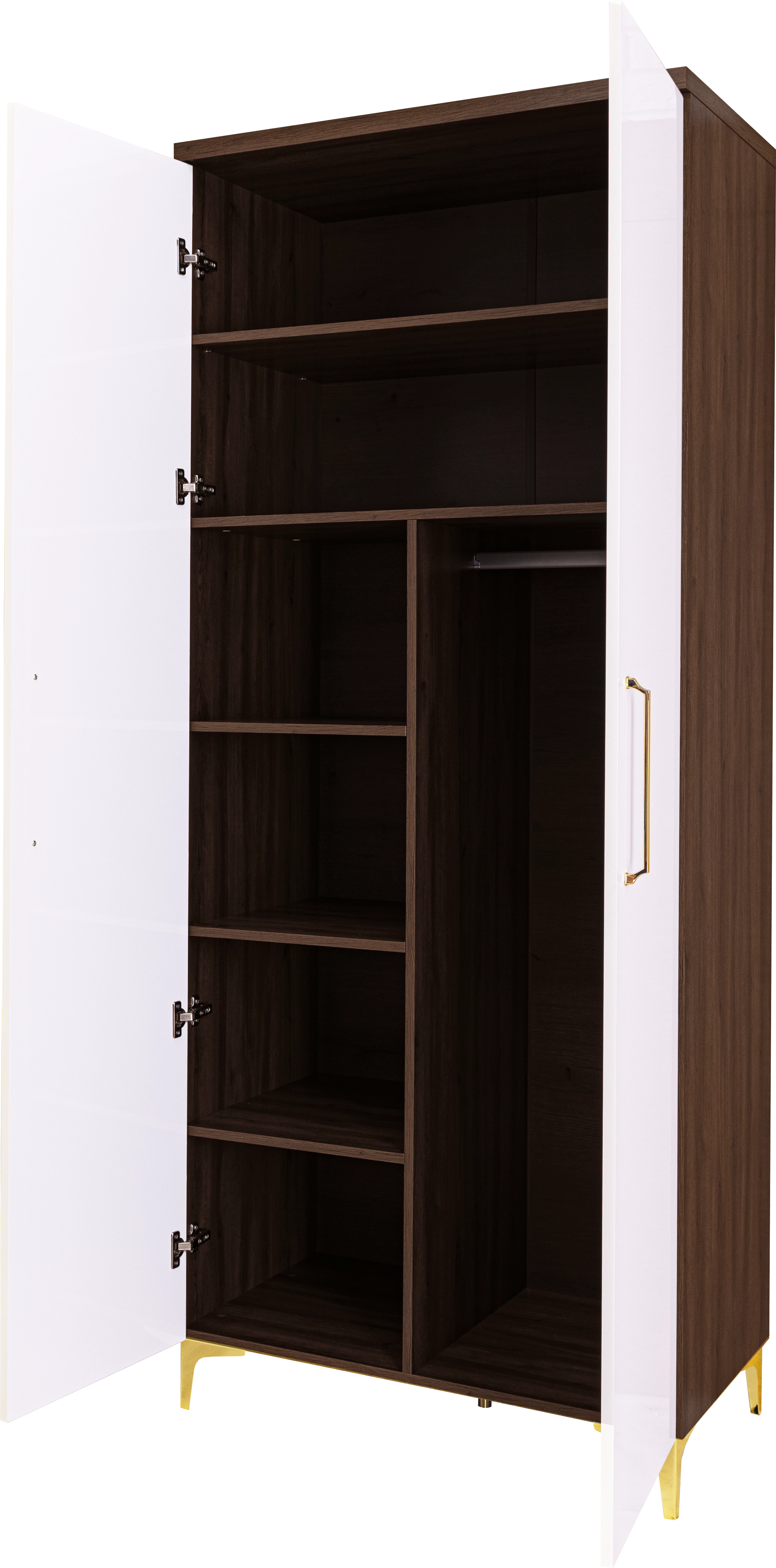 Szafa 2-drzwiowa „BARI” o wysokości 217 cm to nowoczesna propozycja dla osób poszukujących pojemnego i stylowego mebla do przechowywania. Fronty w eleganckim białym połysku pięknie komponują się z korpusem w kolorze orzech Foresta, tworząc wyrazisty i modny kontrast. Wewnątrz znajduje się praktyczny układ półek oraz drążek na wieszaki – idealny do przechowywania ubrań i dodatków. Wymiary: 90x217x52 cm.