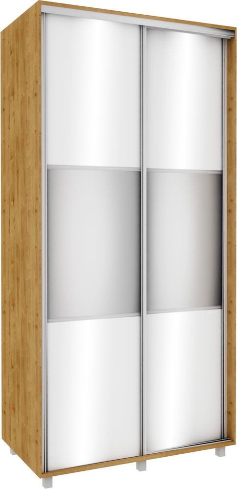 Szafa przesuwna lustra 100cm (biały połysk/lustro/dąb Soma ciemny)