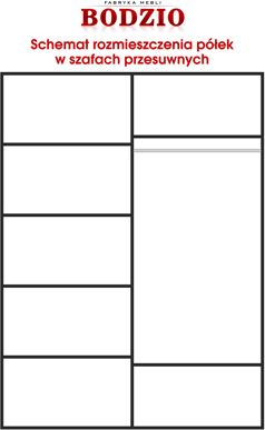 Szafy przesuwne w asortymencie Fabryki Mebli Bodzio zbudowane są z precyzyjnie wykonanych i trwałych elementów zapewniających łatwe i bezpieczne użytkowanie. Funkcjonalne szafy przesuwne sprawdzają się doskonale jako garderoby znajdując zastosowanie w przedpokojach, salonach i sypialniach. Duża ilość dostępnych wariantów kolorystycznych oraz rozmiarów pozwoli Państwu na dopasowanie nowej szafy Bodzio do każdego pomieszczenia.