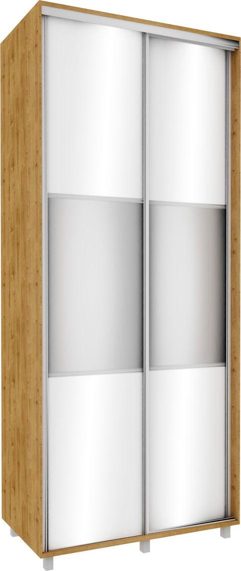 Wysoka szafa przesuwna lustra 100cm (biały połysk/lustro/dąb Soma ciemny)