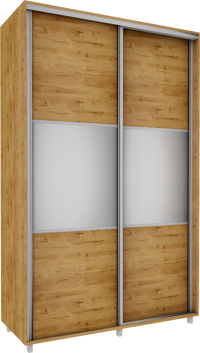 Pojemna i funkcjonalna szafa przesuwna o szerokości 150 cm wyposażona w lustra na froncie. Wysokość szafy wynosi 240 cm.