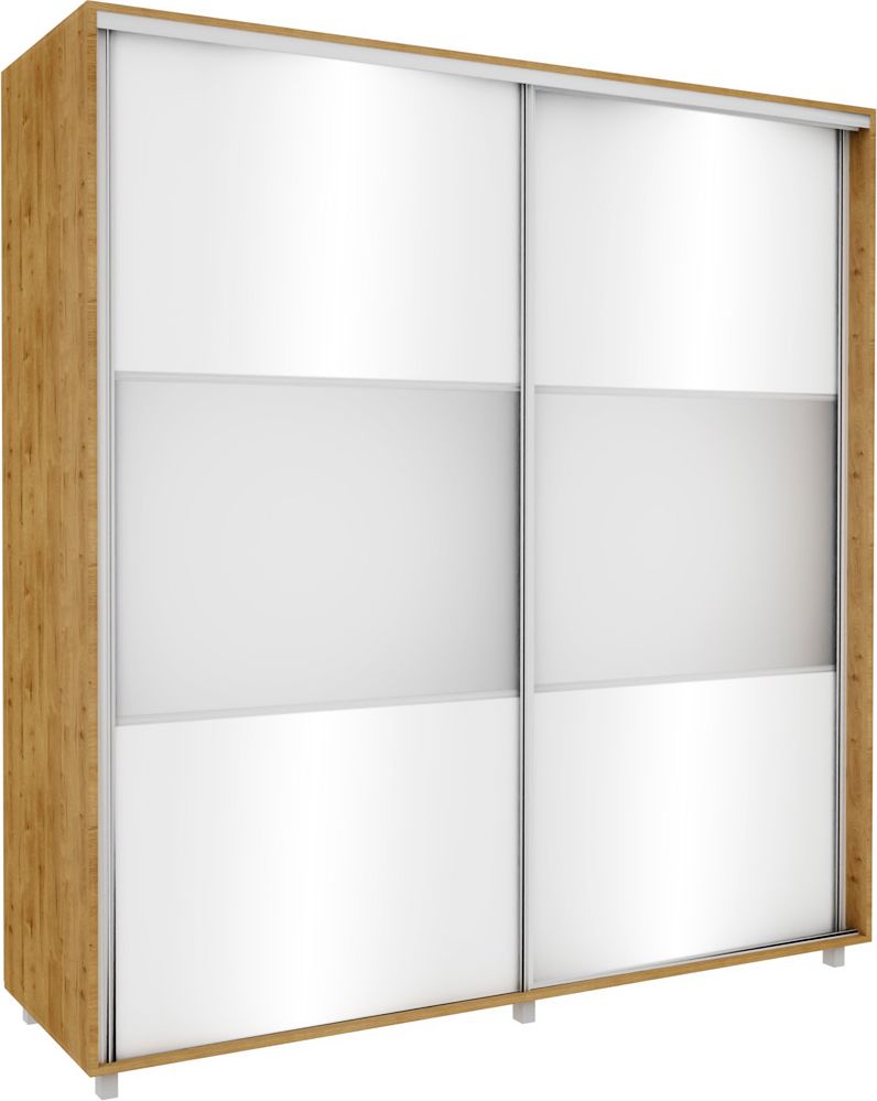 Szafa przesuwna lustra 200cm (biały połysk/lustro/dąb Soma ciemny)