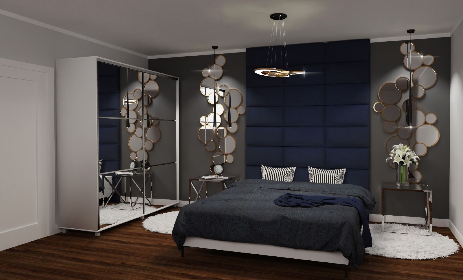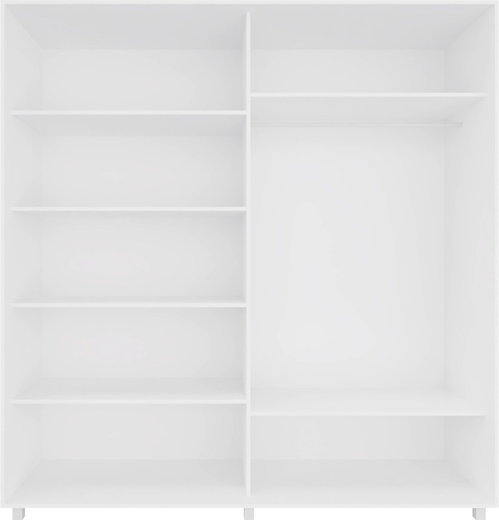Pojemna i funkcjonalna szafa przesuwna o szerokości 200 cm wyposażona w dzielone 3 lustra na dwóch frontach. Wysokość szafy wynosi 210 cm.