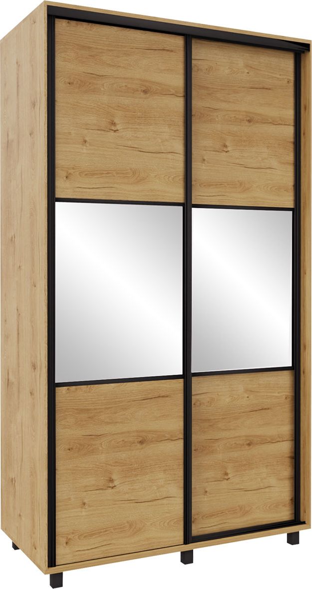 Szafa przesuwna 120 cm lustra (dąb Soma ciemny/czarne okucia)