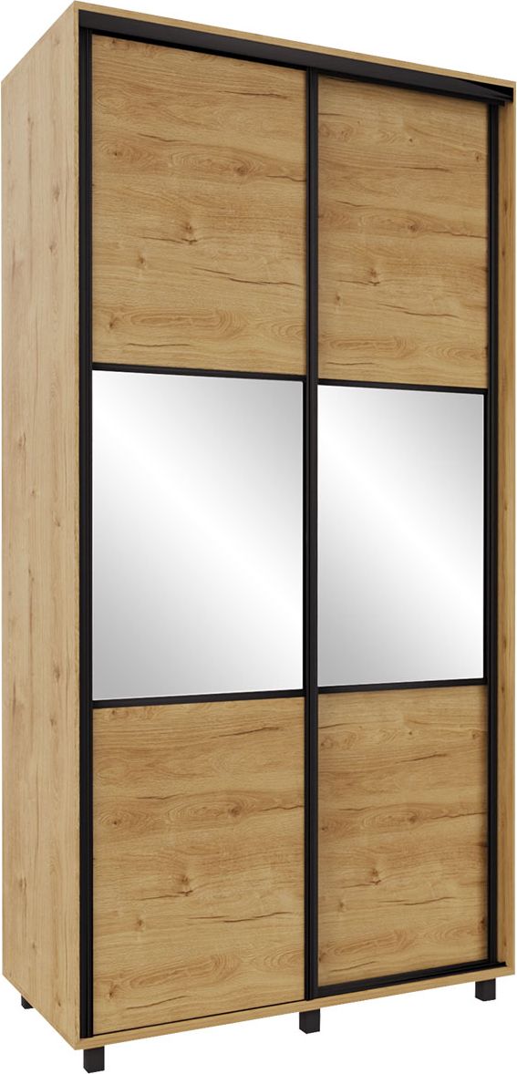 Wysoka szafa przesuwna 120 cm lustra (dąb Soma ciemny/czarne okucia)