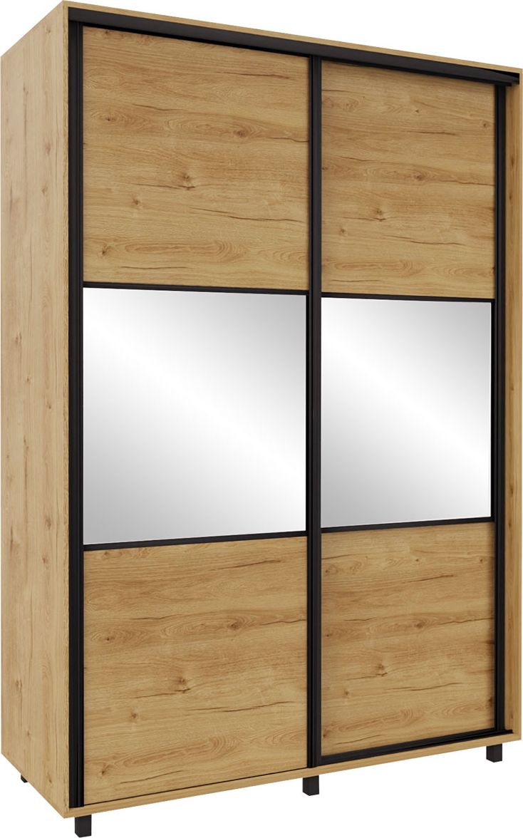Szafa przesuwna 150 cm lustra (dąb Soma ciemny/czarne okucia)