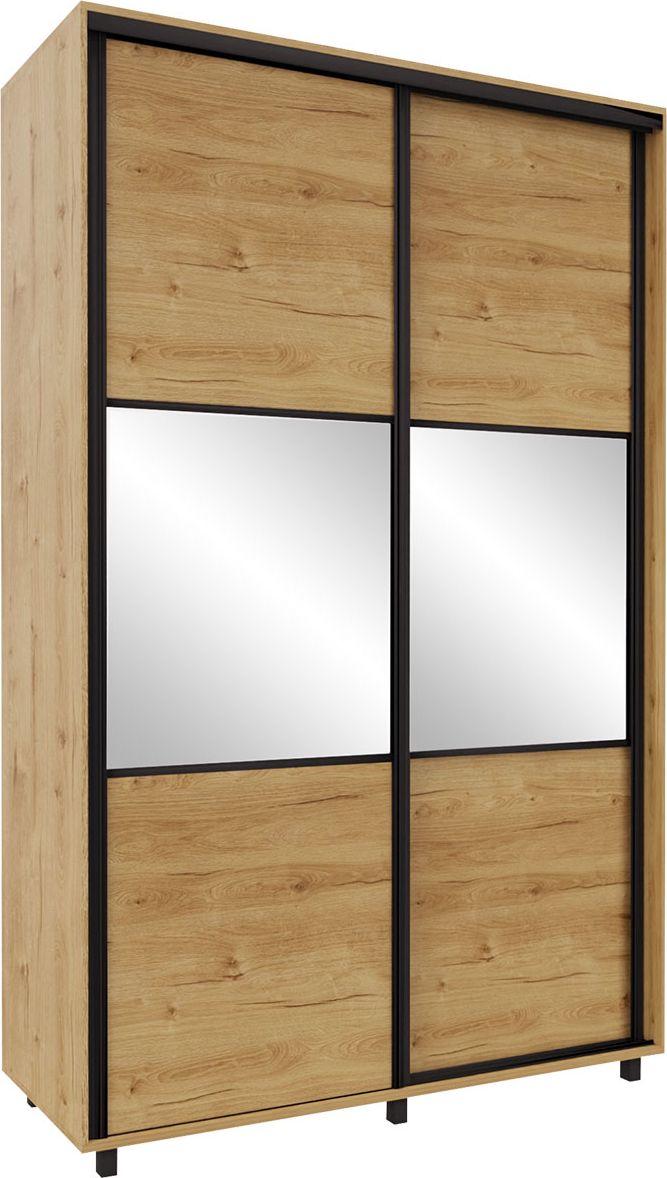 Wysoka szafa przesuwna 150 cm lustra (dąb Soma ciemny/czarne okucia)