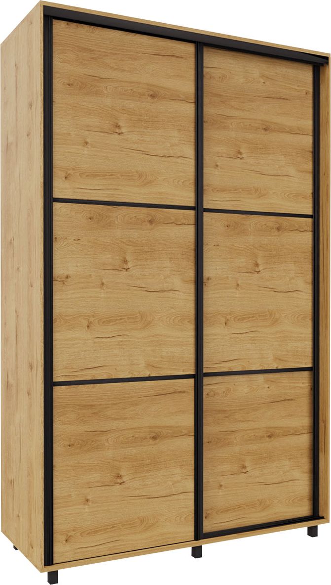 Wysoka szafa przesuwna 150 cm (dąb Soma ciemny/czarne okucia)