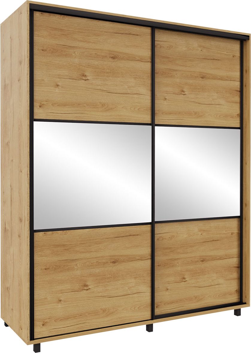 Szafa przesuwna 180 cm lustra (dąb Soma ciemny/czarne okucia)