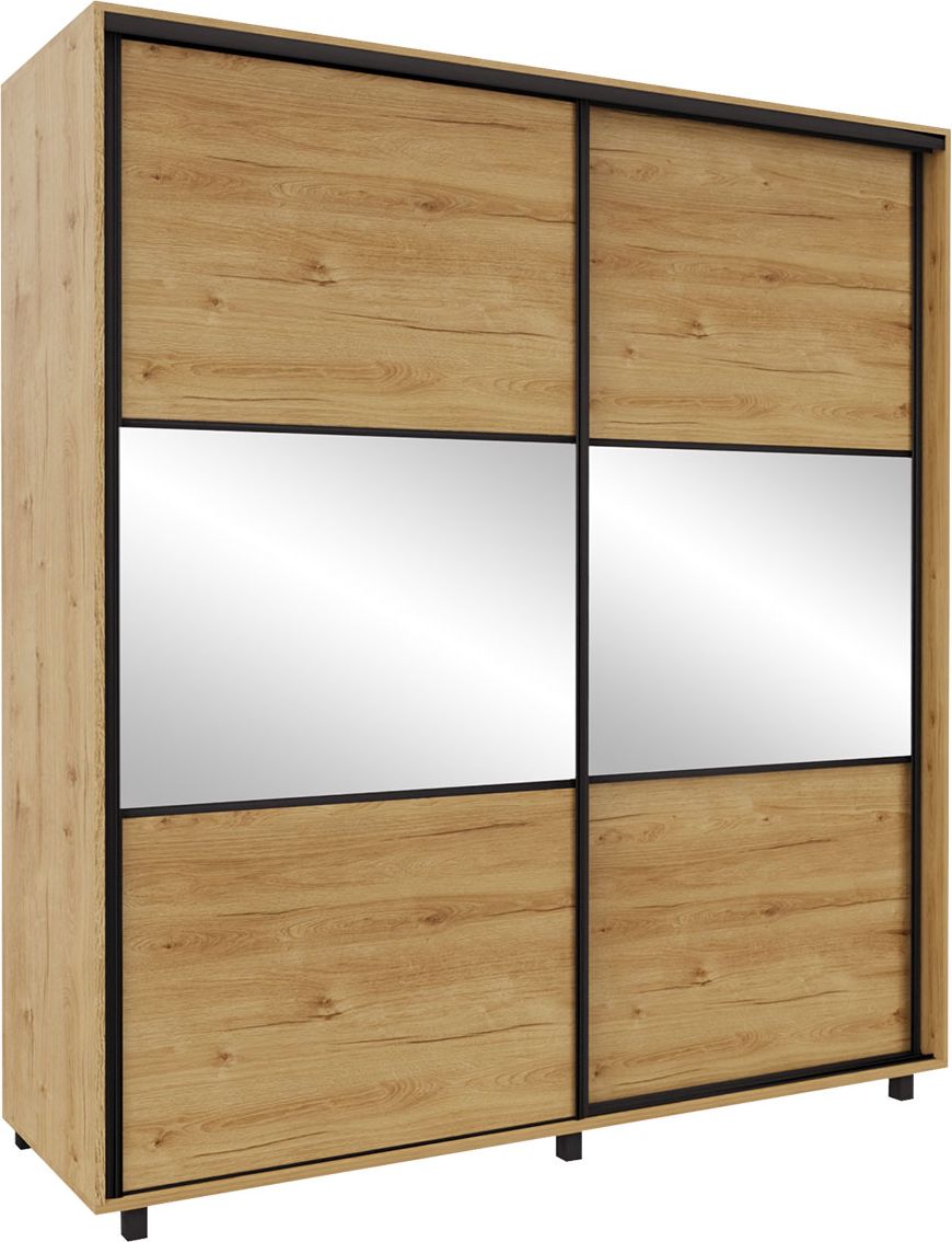 Szafa przesuwna 200 cm lustra (dąb Soma ciemny/czarne okucia)