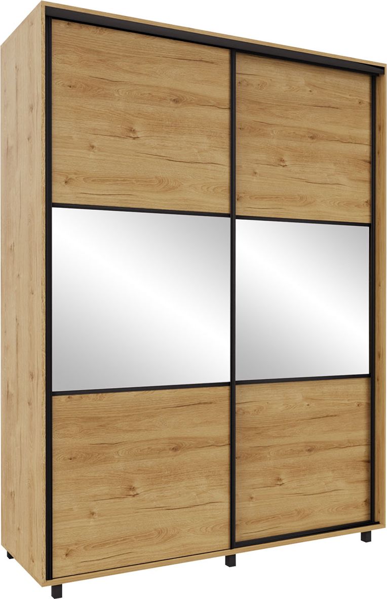 Wysoka szafa przesuwna 200 cm lustra (dąb Soma ciemny/czarne okucia)