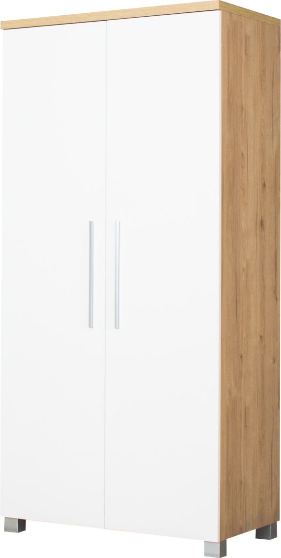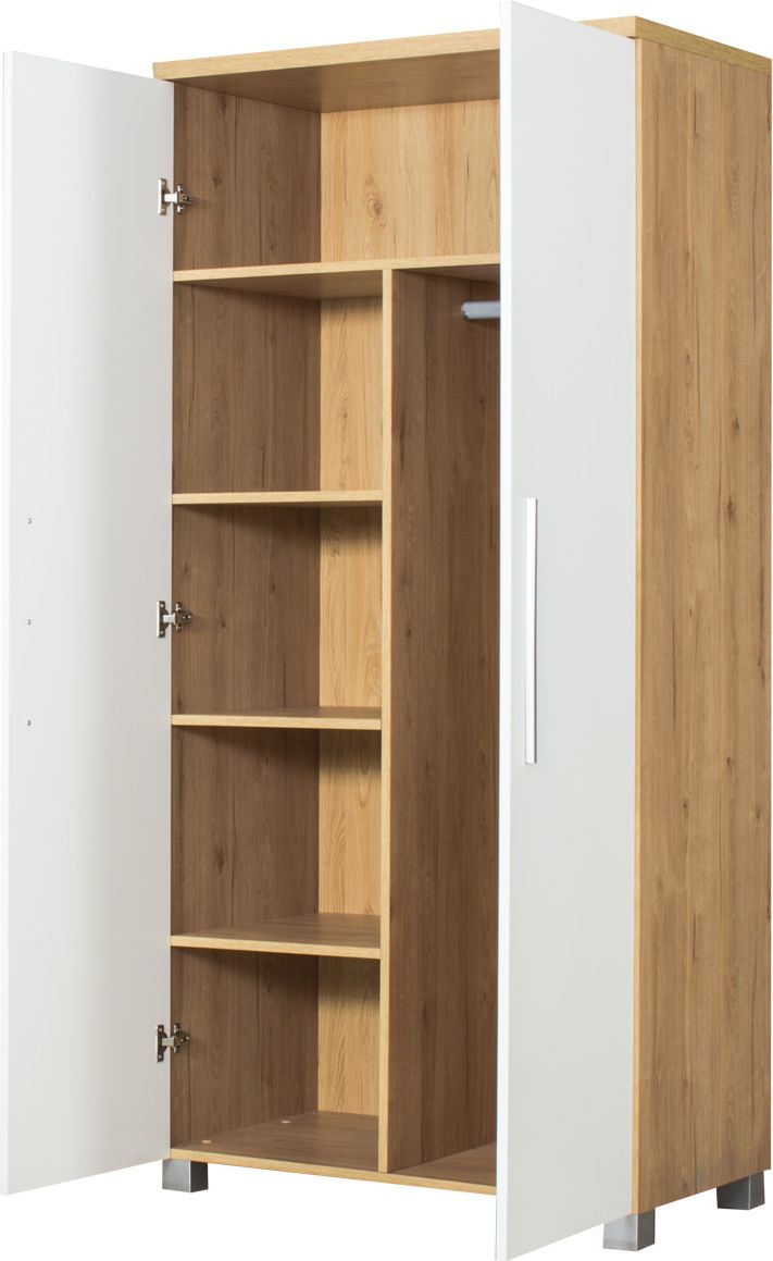 Szafa 2-drzwiowa z półkami i drążkiem Panama (biały połysk/dąb Soma ciemny)