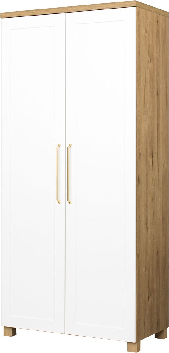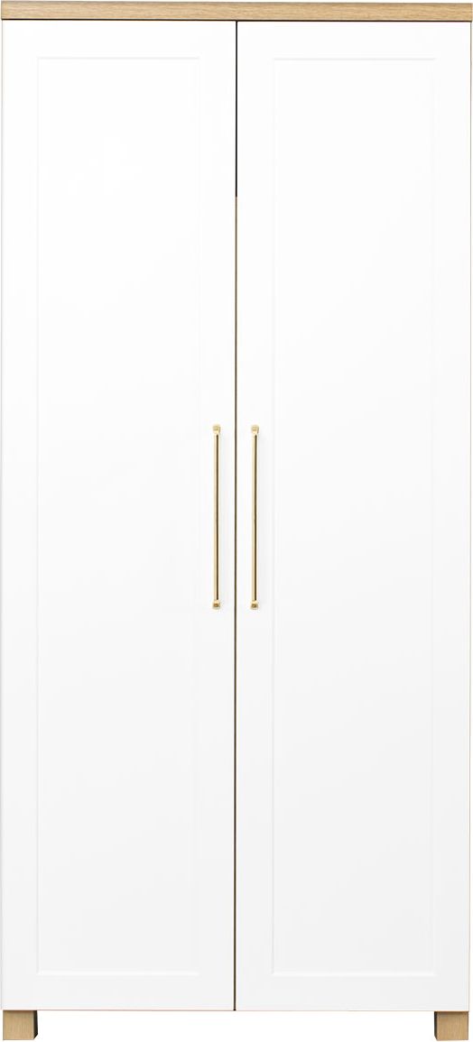 Szafa wysoka dwudrzwiowa z półkami i drążkiem Hawana (biały lakier mat/dąb Soma ciemny)