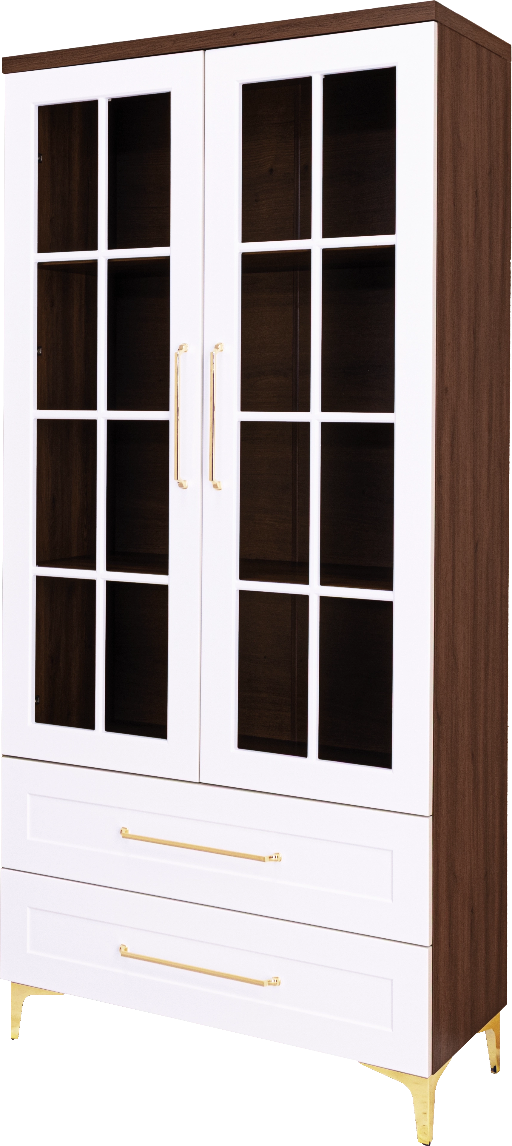 Witryna 2-drzwiowa i 2-szufladowa Hawana (biały lakier mat/orzech Foresta)