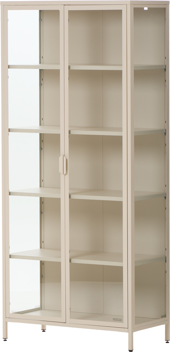 Witryna metalowa 2-drzwiowa „GROOVI”-3 w kolorze beżowym to elegancki i funkcjonalny mebel, który doskonale sprawdzi się w nowoczesnych, loftowych oraz klasycznych aranżacjach wnętrz. Jasna, stonowana kolorystyka nadaje jej lekkości i sprawia, że harmonijnie wpisuje się w różne przestrzenie.