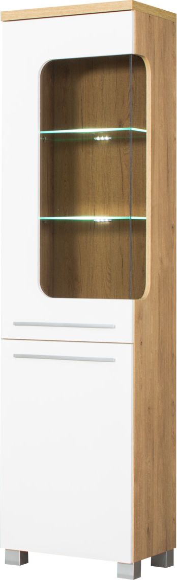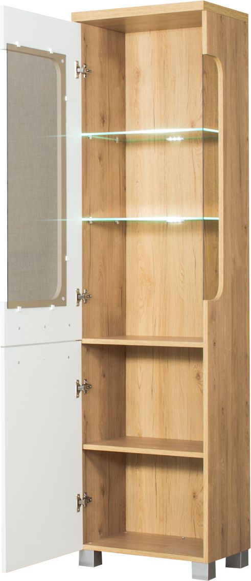 Witryna lewa z półkami LED (biały połysk/dąb Soma ciemny)
