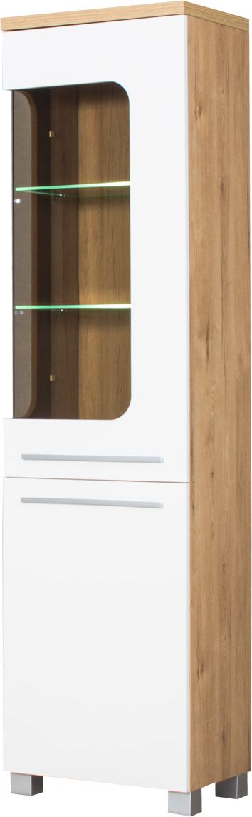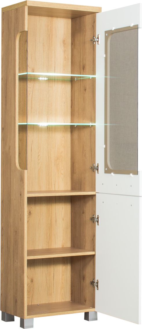 Witryna prawa z półkami LED (biały połysk/dąb Soma ciemny)