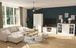Kolekcja mebli pokojowych Tosknia to nowoczesność połączona z elegancją w stylu prowansalskim. Fronty ramiakowe w barwie białej idealnie komponują się z blatami w kolorze dąb Soma ciemny, natomiast czarne okrągłe uchwyty dopełniają produkt. Warto również zwrócić uwagę na zastosowanie cokołów, zamiast stopek, co dodatkowo nadaje całości nowoczesny design. Z wykorzystaniem mebli Toskania z łatwością urządzimy salon, pokój młodzieżowy, sypialnie, a także biuro.